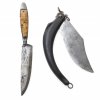 Alpenländisch, 18. Jh. 3-teilig: 1 Messer, 1 Gabel, 1 Wetzstahl. Holzscheide mit integriertem Klappmesser. Besch. L. 15 cm.