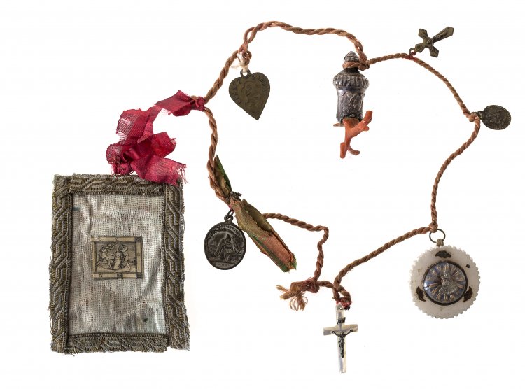 Bayern, 19. Jh. Mit sieben Anhänger und Breverl (ohne Inhalt). L. 35 cm.