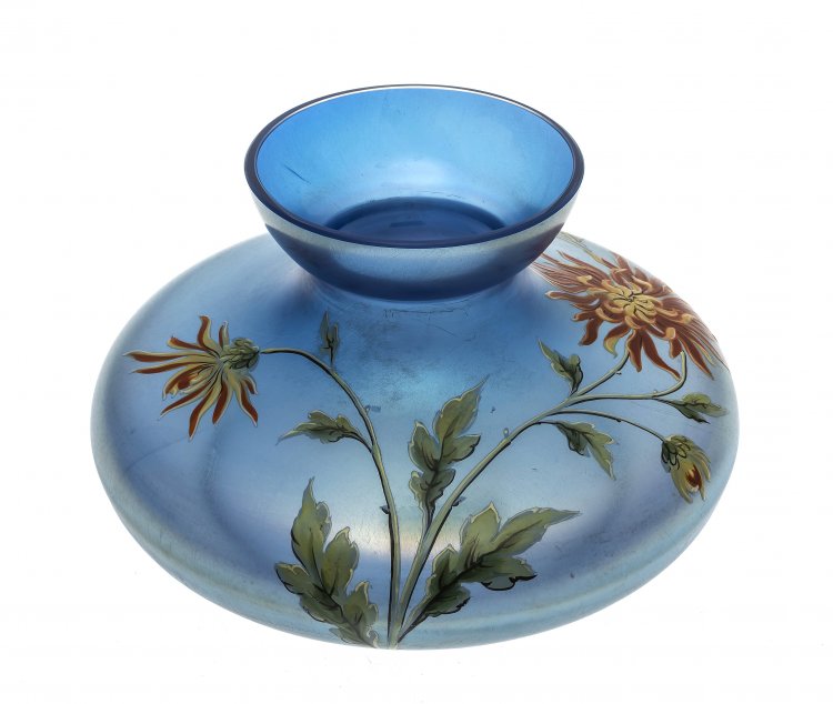 Buchenau-Spiegelhütte, Ferdinand von Poschinger II.Chrysanthemendekor. H. 12 cm. Entwurf: Betty Heldrich, 1869 Zwiesel - 1958 München.
