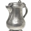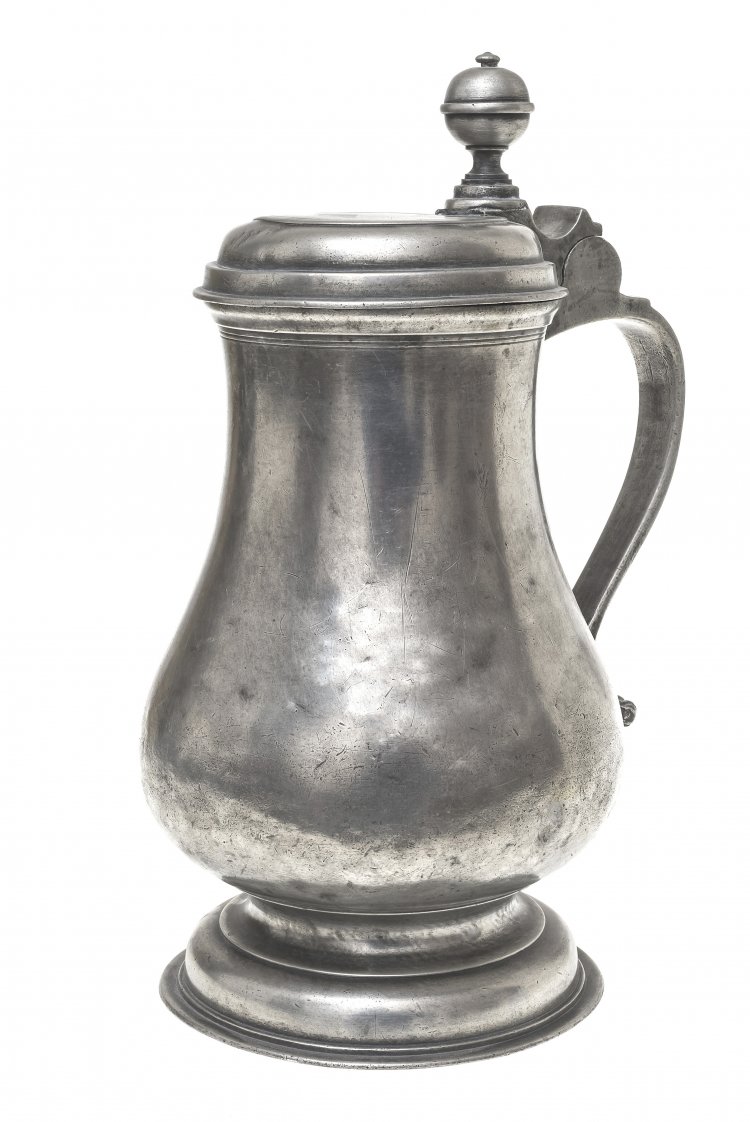 Prag, Meister S.F.S., wird 1738 Meister. Zinn. Deckel mit kugelförmiger Daumenrast. Marken im Deckel. Leicht best. H. 29,5 cm.