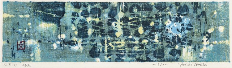 Abstrakte Komposition in Türkisblau. Farbholzschnitt. 10,5 x 39,5 cm. Auflage 26/50. Sign., dat. 1963.