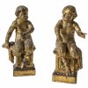 Süddeutsch, 18. Jh. Holz, vollrund gearbeitet, übergangene Farbfassung. Auf profilierten Sockel mit Blattmotiv hl. Mutter Anna hinter Maria stehend, mit ihrer Linken auf das aufgeschlagene Buch, das Maria in Händen hält, hinweisend. Fassung berieben, rest. H. mit Sockel 37 cm.