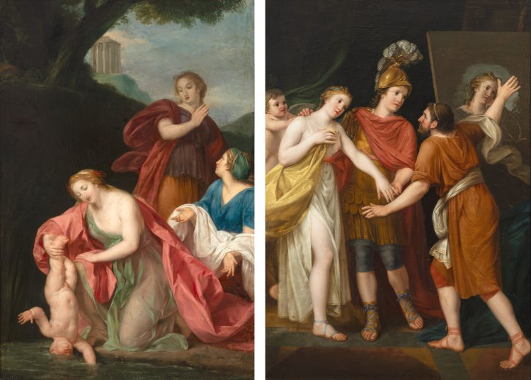 Rom, um 1783-85. Zwei Gemälde: 1) Thetis taucht ihren Sohn Achilles in den Fluss Styx. 2) Apelles und die Geliebte Alexander des Großen.