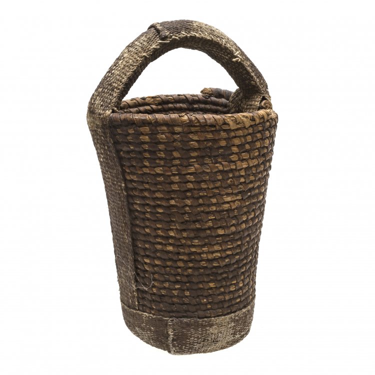 Strohgeflecht gewachst. Mit Henkel. Gebrauchsspuren. H. 41 cm.