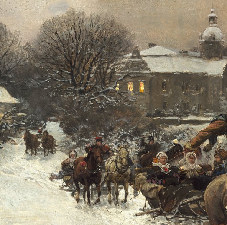 Litauischer Schlitten, um 1884. Öl/Holz. 44,3 x 65 cm. Kleiner Farbabrieb mittig und an den Rändern. Sign. Ohne Rahmen.