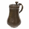Kröning. Irdenware, leicht geriefelt, außen grün glasiert, am Bügelansatz gekniffener Dekor. Best., im Boden kleines Loch. H. 30 cm.