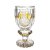 Deckelhumpen Deckelhumpen. Süddeutsch, 19. Jh. Farbloses Glas mit Mattschliffdekor. Symbolik "Glaube, Liebe und Hoffnung". Feiner Goldabrieb. Zinndeckel mit Besitzermonogramm und Daumenheber in Schwanform neu montiert. Gebrauchsspuren. H. 17 cm. |