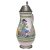 Birnkrug, Gmunden Birnkrug. Gmunden. Fayence, farbig bemalt. Rastender Wanderer mit Pfeife. Zinnmontierung. H. 28 cm. |