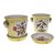 Ein Paar Cachepots Ein Paar Cachepots mit Untersetzer. Porzellan, gelb glasiert. Mit plastischen Widderköpfen und Malereireserven. Ein Untersetzer mit Haarriss. H. 22 cm. |