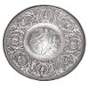 Barockstil. Zinn. Im Spiegel Früchteschale mit Papagei, Fahne mit Besitzermonogr. und bez. 1669. ø 32 cm.