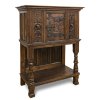 Südwestdeutschland/Pfalz, um 1780. Kirschbaum, massiv, partiell geschnitzt. Dreiteiliges, schlankes Gehäuse mit seitlichen Voluten, Sichtfenster für das Pendel und Schnitzdekor, Uhrenkopf mit gebogtem Abschluss. Uhrwerk mit bemaltem Eisenzifferblatt, Schlagwerk auf Glocke, Werk nicht auf Gangbarkeit geprüft. Alterungsspuren, Risse. 206 x 37 x 23 cm.