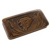 Schnupftabaksdose. Holz, geschnitzt. Deckel mit Seitenprofil eines Mannes, in Medaillon. Gebrauchsspuren. L. 10 cm.