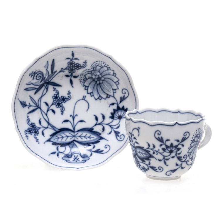 1. Jh. Porzellan, blauer Unterglasurdekor Zwiebelmuster. Blaue Schwertermarke, ein Schleifstrich.