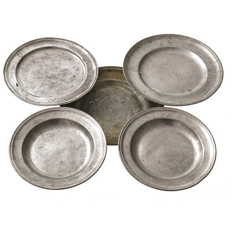 Fünf Teller (drei darunter Augsburg, Ruprecht)