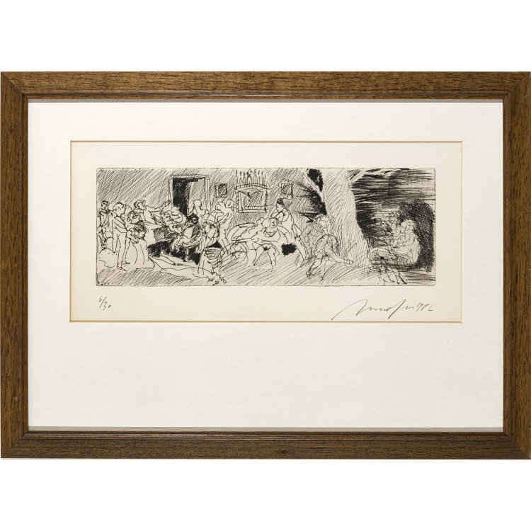Orgie. Kaltnadelradierung. 14,3 x 41 cm. (Platte). Aufl. 6/30. Min. Lichtrand. Sign., unleserl. dat.