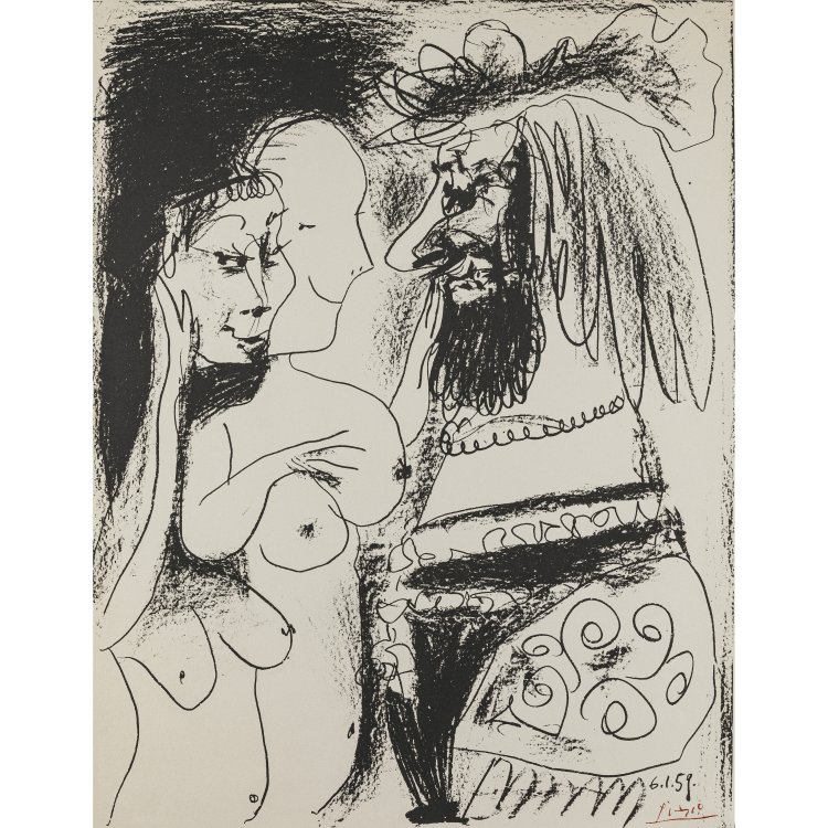 Zwei Frauen vor dem König. Wohl Seriographie. 66,5 x 51 cm.