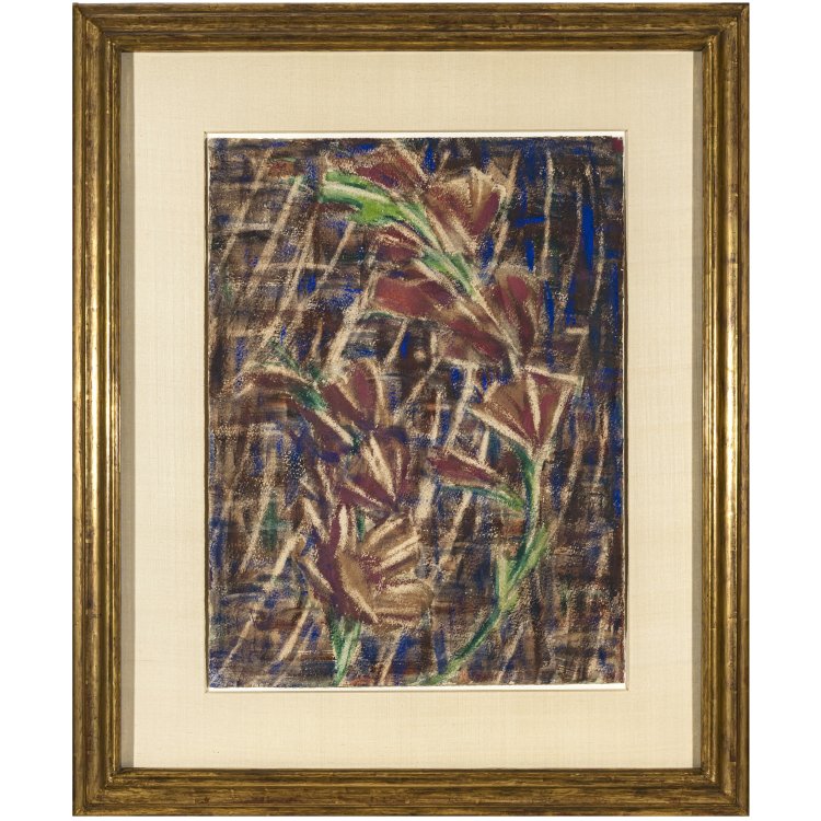 "Rote Gladiolen". Aquarell/Pastell. 42,5 x 56,5 cm. Monogr., dat. 27.