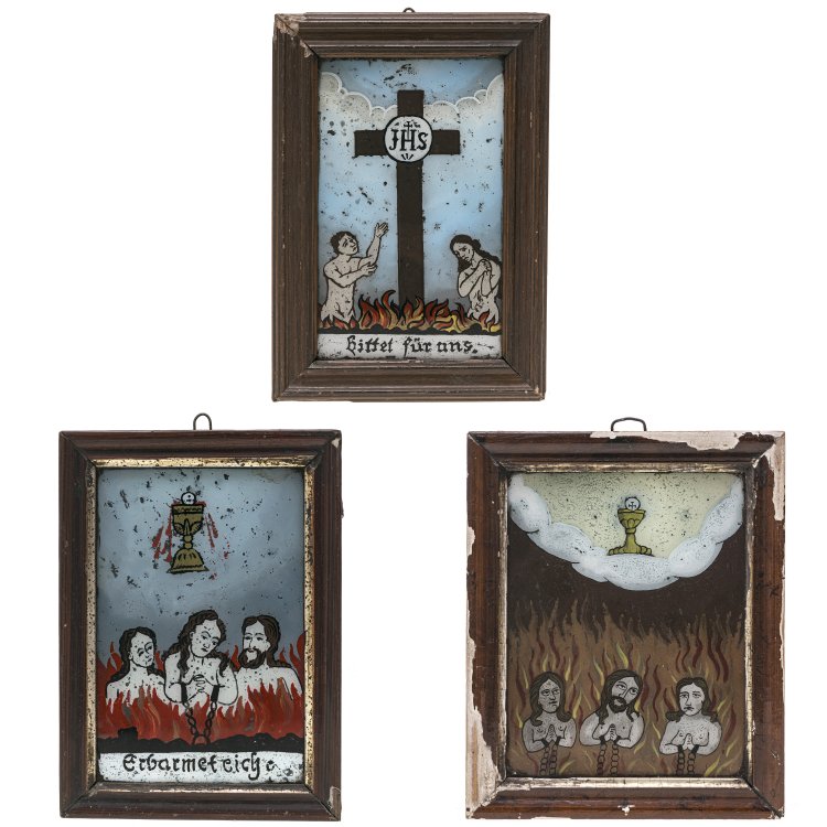 Arme-Seelen-Tafeln. Tempera/Glas. 15 x 11,5 cm - 17 x 11 cm. Leicht besch.