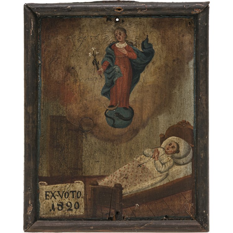 Bayern, dat. 1820. Anbetung der Mondsichelmadonna. Tempera/Holz. Besch. 29 x 22 cm.