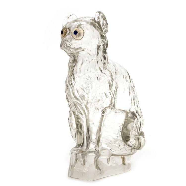 Frauenau, 20. Jh. Glasmanufaktur Poschinger. Stilisierte Katze, Kristallglas, Farbglas und Krösel. H. 25 cm. Minim. Abrieb.