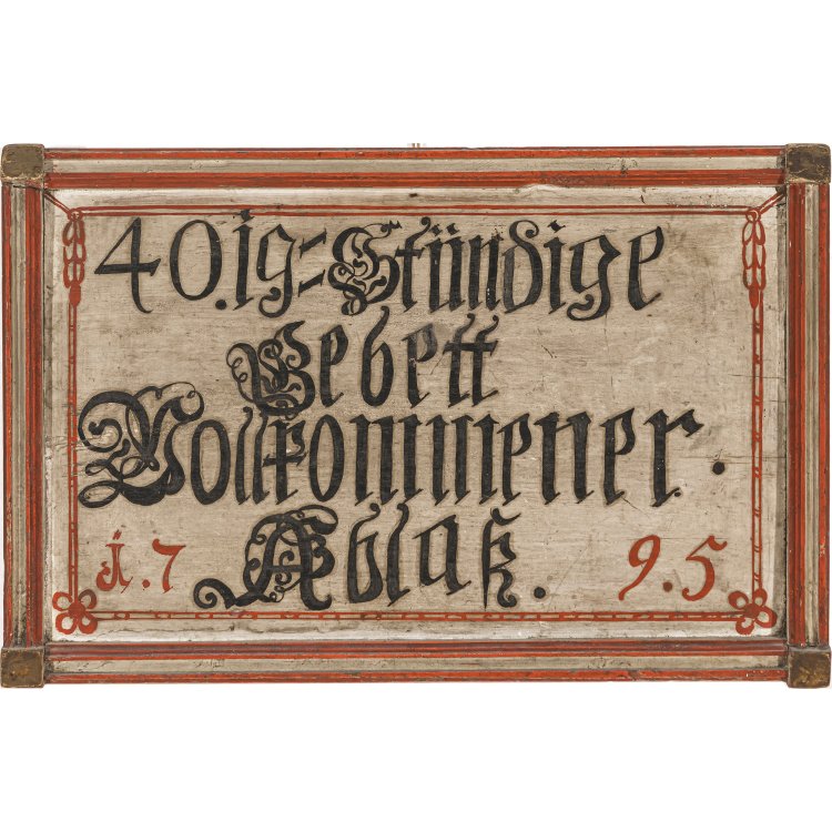 Deutsch, dat. 1795. Inschrift "40.ig=stündige Gebet Vollkommener Ablaß". Tempera/Holz. 35 x 53,5 cm. Best.