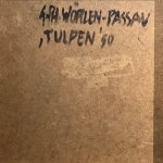 "Tulpen", 1950. Öl/Hartfaser. 43 x 40,6 cm. Monogr., dat. 50. Verso sign., bez. und dat.:"G.Ph.Wörlen-Passau/Tulpen 50".