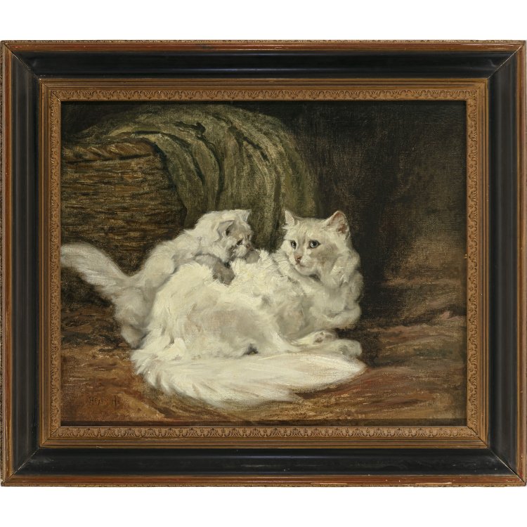 Zwei Katzen. Öl/Lw. 55 x 68 cm. Sign.