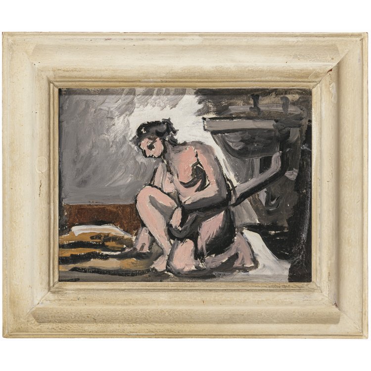 Knieender Mädchenakt. Öl/Lw. 24 x 31 cm. Sign.