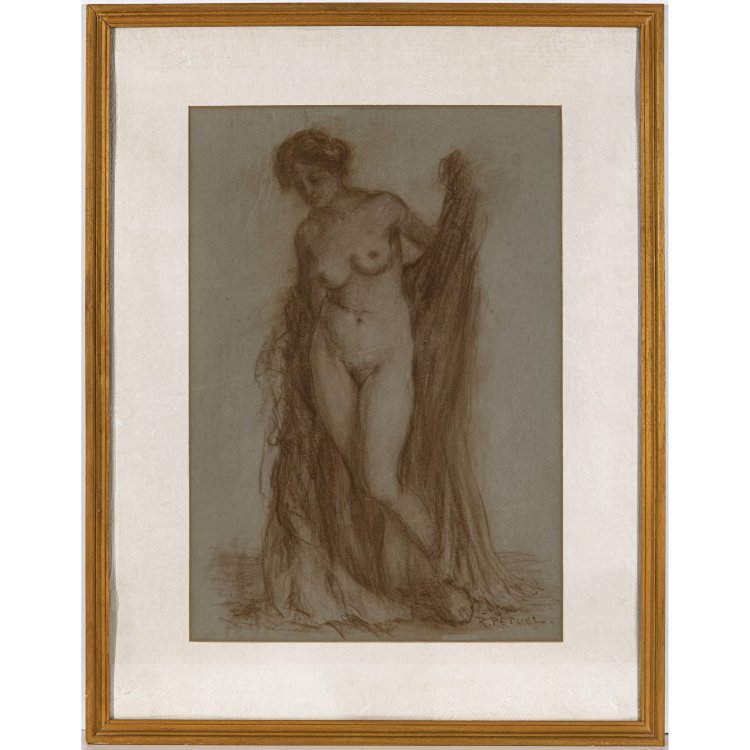 Stehender Mädchenakt. Rötelzeichnung. 57 x 40 cm. Sign.