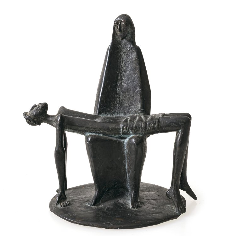 Bronzeplastik. Pietà. Sign. 18 x 17,5 cm. Patina.