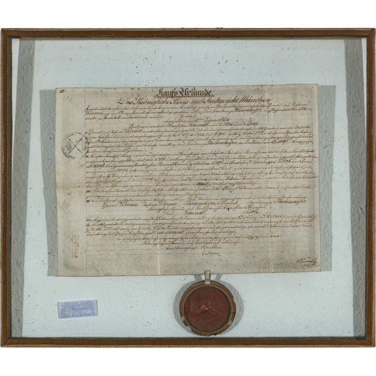 1. Jh. und früher. Eine vom königlichen Kreis- und Landgericht München. Jeweils mit Wachssiegel und im doppelseitig verglasten Rahmen. Alterungsspuren, Lichtschäden. Verschiedene Maße.