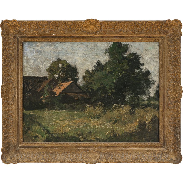 Gehöft bei Langwied/München. Öl/Lw. 46 x 32 cm. Sign.