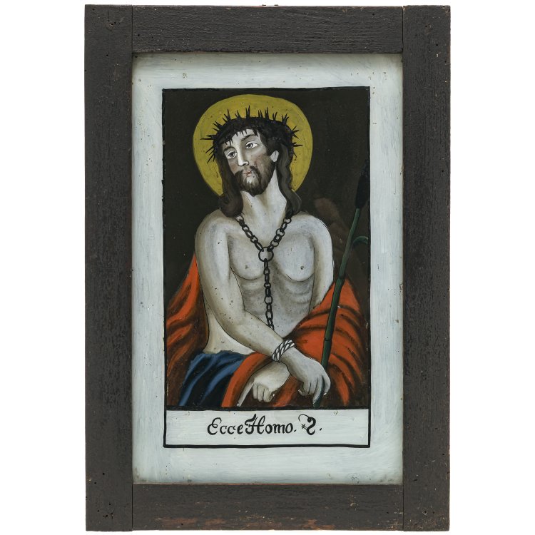 Bayerischer Wald, 19. Jh. Ecce homo. Tempera/Glas. Rest. 32 x 20 cm.