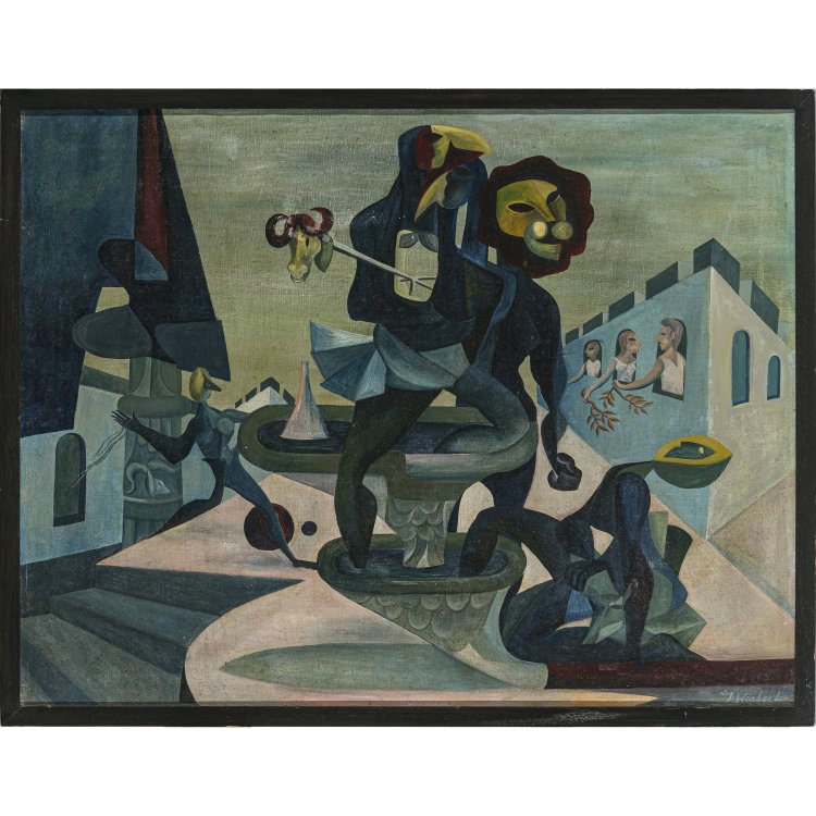 "Der Brunnen". Öl/Lw. 70 x 90 cm. Sign.