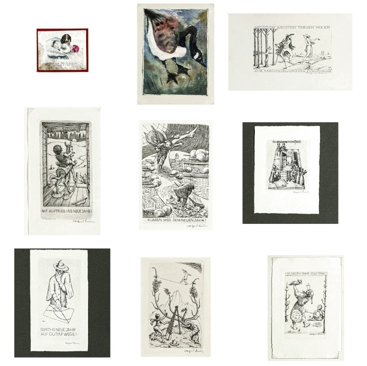 Konvolut von Neun Freundschafts- und Glückwunschkarten.