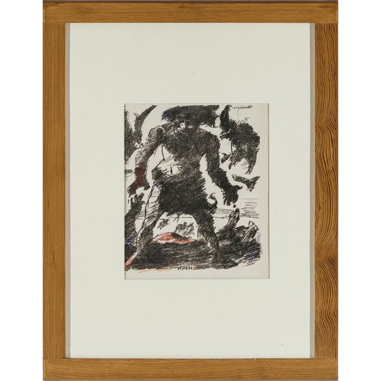 "Kain erschlägt seinen Bruder Abel". Farblithografie. 42 x 33,5 cm. Lichtrand.
