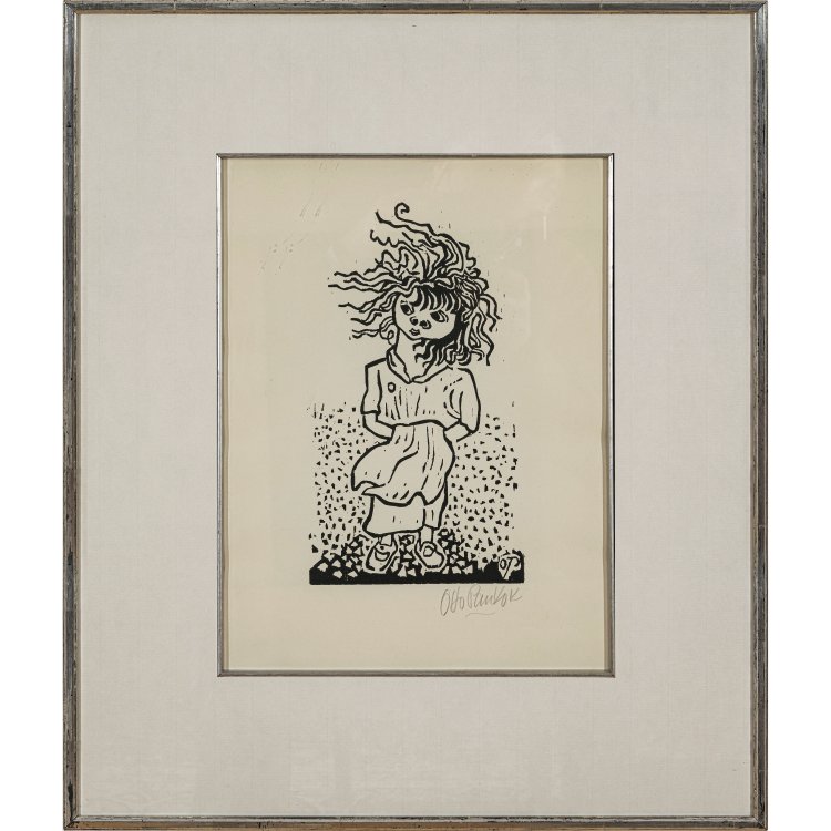 Darstellung eines Zigeunermädchens. Holzschnitt. Blatt ca. 37 x 28 cm. Monogr. "OP" in Platte. Original-Bleistiftsignatur. Sehr guter Zustand. Gerahmt und hinter Glas.