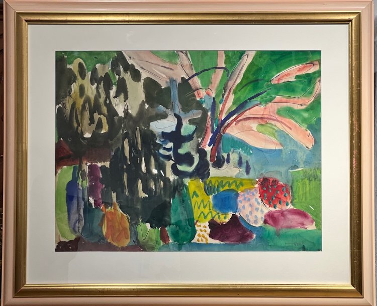 Garten. Aquarell. 47 x 62,5 cm. Sign., dat. 63.