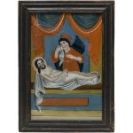 1. Jh., eines später. Beweinung Christi bzw. hl. Antonius mit dem Jesuskind. Tempera/Glas. 31 x 20,5 cm bzw. 29 x 18,5 cm. Eines besch., rest.