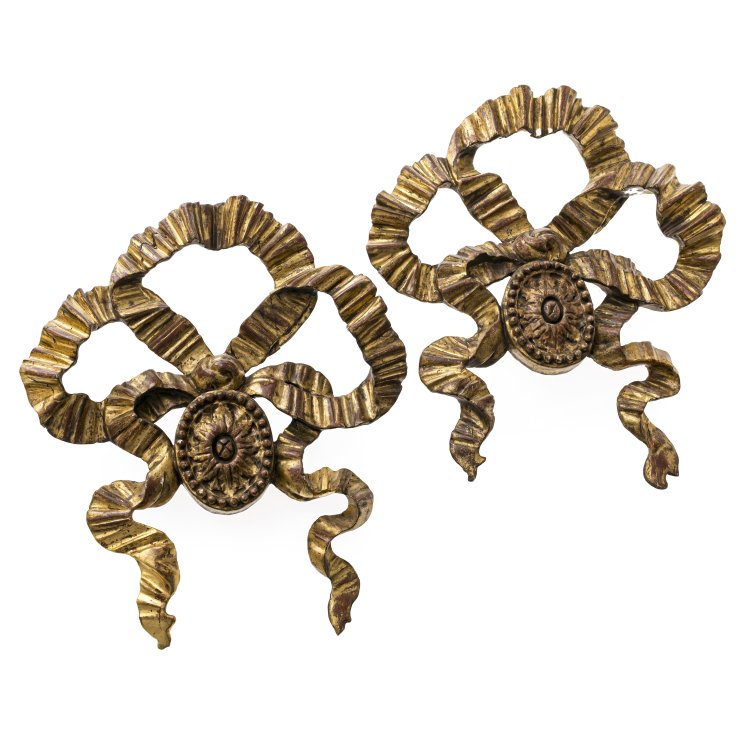 Um 1780. Holz, vergoldet. In Schleifenform. Rest. H. je 38 cm.