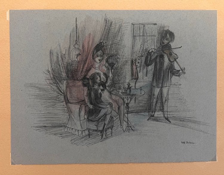 Der Geiger. Tuschzeichnung. 20 x 27 cm. Sign.