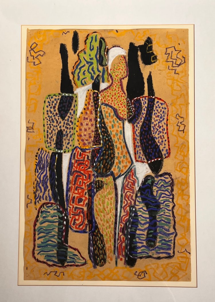 Abstrakte Komposition (ohne Titel). Pastell/Papier. 49,5 x 32 cm. Atelierspuren, unsign., rücks. nummeriert.