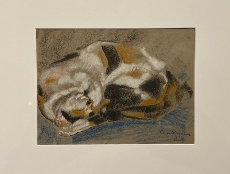 Schlafende Katze, Mischtechnik/Pastell. 35 x 65 cm. Sign., dat. 19.1.19